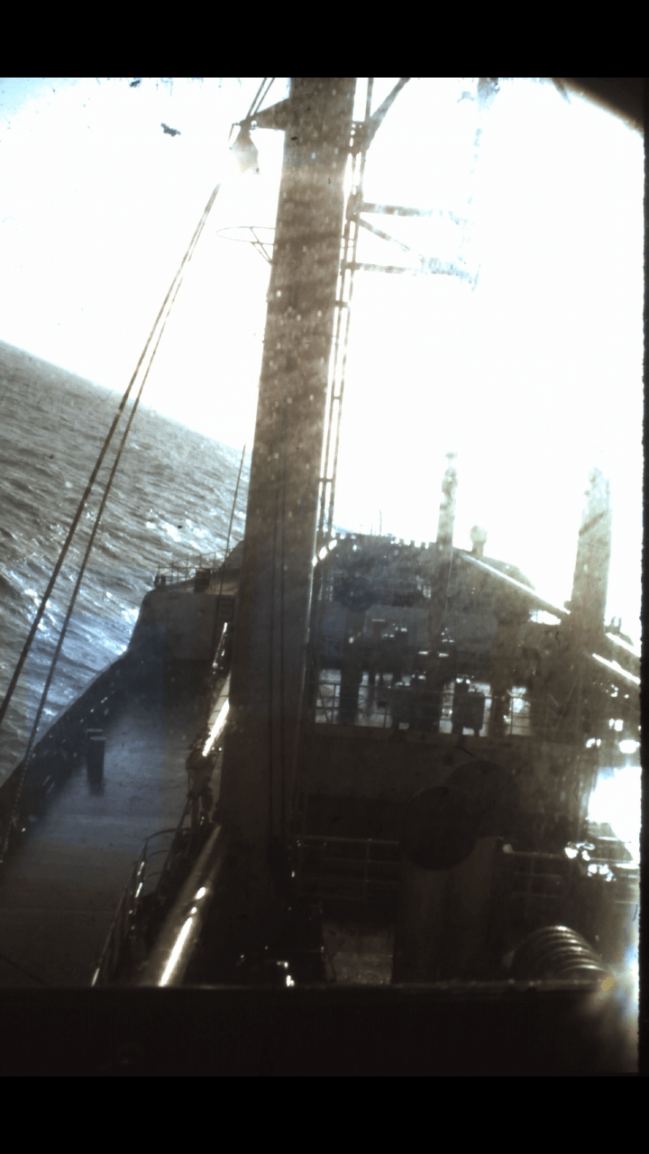 This was even worse than before, we had cero control over the vessel, now we moved like a nutshell at ruff sea. Our telegraphist sends out a S.O.S. call, as now, we were outside the hurricane! Finally, it was captured by a large oil tanker ahead of us and came to rescue, until a tugboat from somewhere came to assist us.