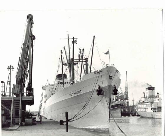To reach to our destination, we moved slowly into the Brisbane river surrounded by beautiful modern houses with garden all the way down to the waterfront. At that time in 1965, the quay was almost in the city center. Later in the 70th a brand-new port was built at the river entrance, far away from downtown Brisbane.